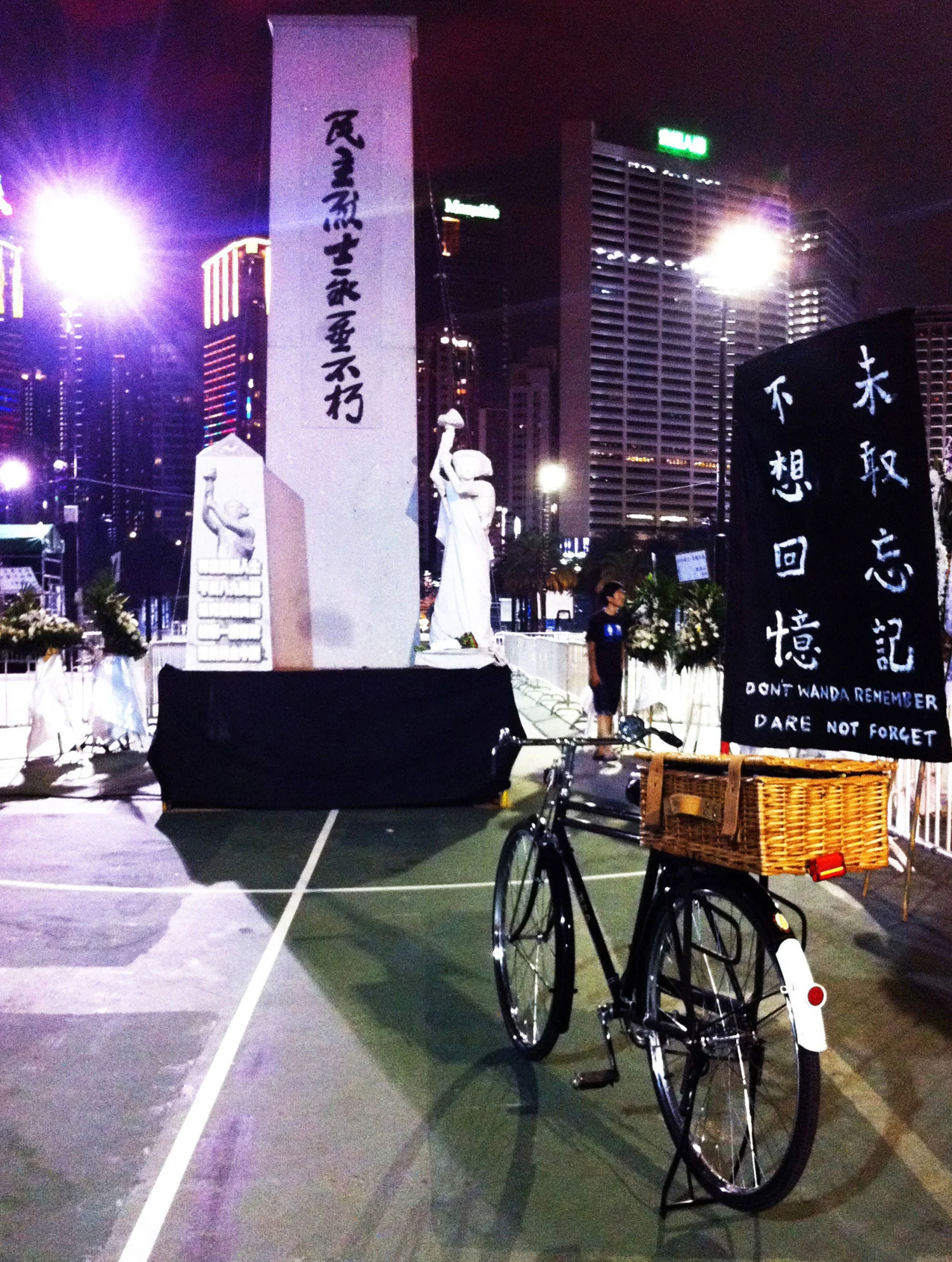 1989年,中國大學生於天安門廣場舉辦活動,要求共產黨正視高層腐敗問題並要求政治改革,他們最終被軍隊屠殺。在每年的六四燭光晚會,都會有「不想回憶未敢忘記」的標語。我參加了活化廳舉辦的「來往廣場的單車」紀念活動,騎舊款單車,模仿80年代的中國大學生往返天安門廣場互通消息的景象。一群六四鬼魂騎單車探訪香港與六四有關的地點,獻出鮮花以紀念死者,討論民主。行程終點在維園,跟其18萬香港市民一起參與六四燭光晚會。